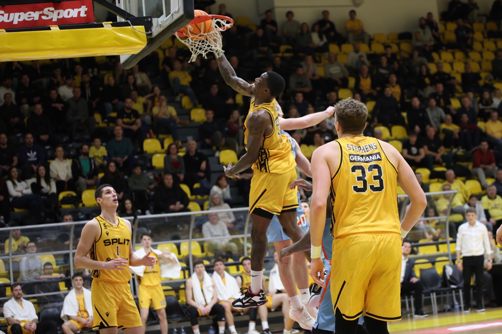 Split je u 13. kolu Super Sport Premijer lige na Gripama svladao Cedevitu Junior s 90:82 (22:24, 30:18, 17:24, 21:16) i uzvratio joj za jedini poraz u prvenstvu. Dugo su gosti parirali “Žutima”, ali nisu izdržali ritam i rotacije Splita. Publika je uživala u atraktivnim zakucavanjima, ono Myersovo krajem druge četvrtine ostat će zapamćeno, blokada i asistencijama… Najefikasniji je bio Teyvon Myers s 20 poena, Antonio Jordano bio je standardan (17 poena), njima su se pridodali odlični Dario Drežnjak (14 poena, šut 85 posto) i Ivan Perasović (12 poena, šut 83 posto, 7 skokova, 5 asistencija) i to je bilo dovoljno za pobjedu.